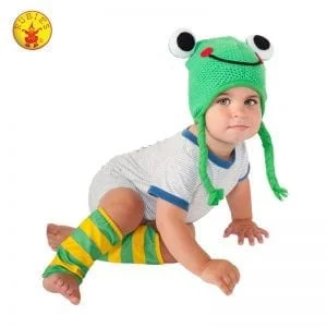- Soft woollen beanie with attached froggy face feature and large 3D eyeballs