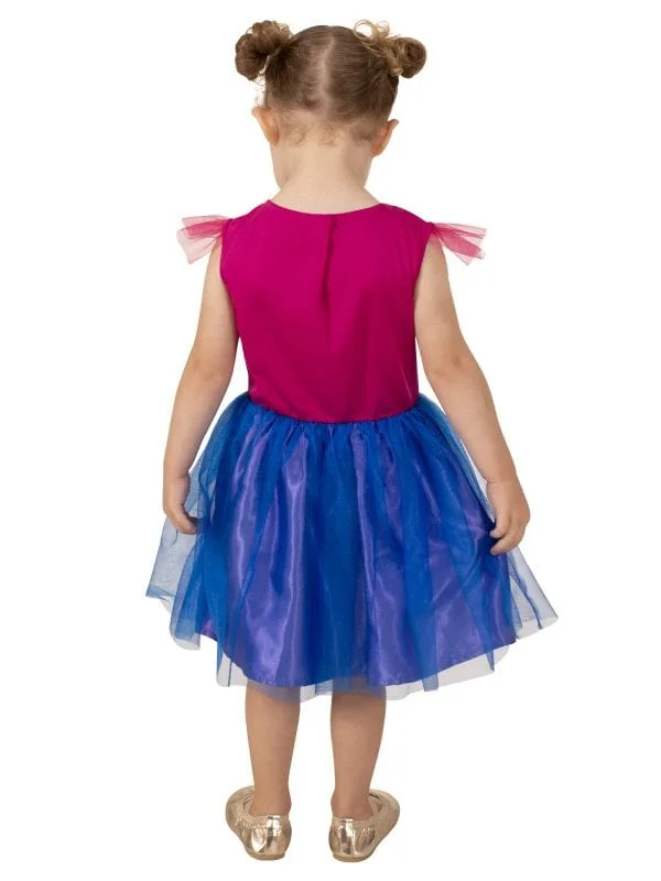 - Bodice is satin with digitally printed character motif and velcro tabs at rear