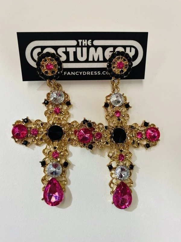 Limited Edition Costume Jewellery – Antique Bejewelled Gold Cross Earrings