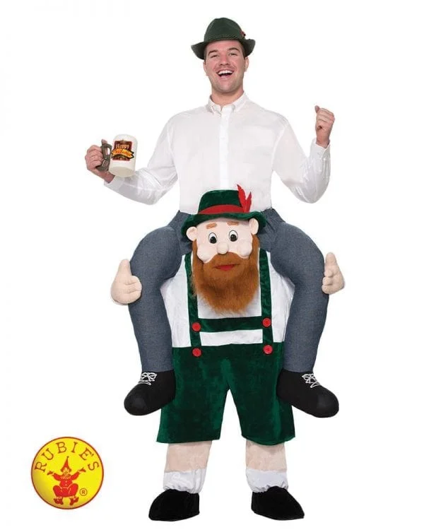 - All-in-one plush waist-high jumpsuit with Leprechaun features and lederhosen