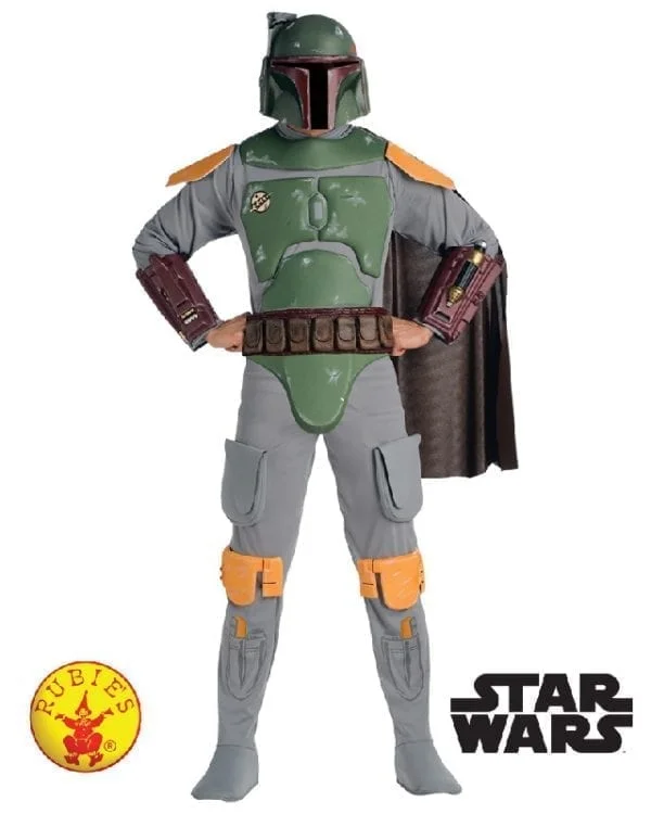 One of the greatest villains in the Star Wars Empire, Boba Fett, Bounty Hunter and cloned father of Jango Fett, is a true force to be reckoned with. Working for characters like Darth Vader and Jabba the Hut, he is one of the most feared bounty hunters in the galaxy. Known for his Mandalorian armour, deadly weaponry, and silent demeanour, he wreaks havoc in many Lucas Film Star Wars episodes, including A New Hope (1977), The Empire Strikes Back (1980), Return of the Jedi (1983), The Phantom Menace (1999), Attack of the Clones (2002), Revenge of the Sith (2005) and The Clone Wars (2008).
