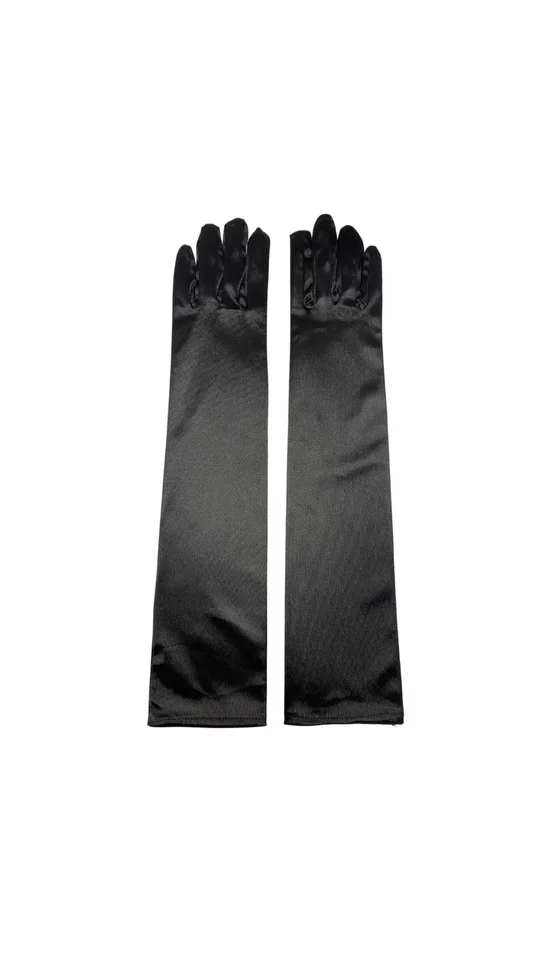 These deluxe quality stretch Long Satin Black Gloves are the perfect addition to your elegant masquerade ball gown, or any fancy dress costume.