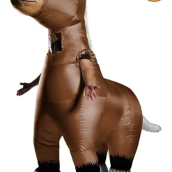 - Plastic inflatable full body horse jumpsuit with zipper and clear vinyl port in character neck to see through. One person only required in costume