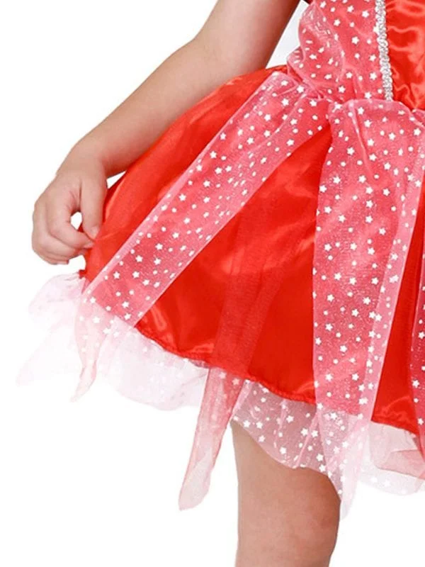 - Pair of detachable wings on soft wire frame with tulle and glitter attach to the back of the dress with velcro tabs