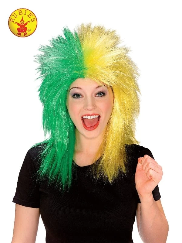 - Hair has stand up shape and is coloured half green and half yellow