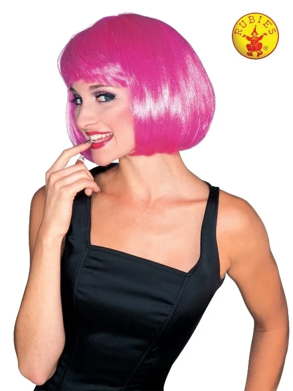 - Short, hot pink hair wig made from polypropylene hair strands