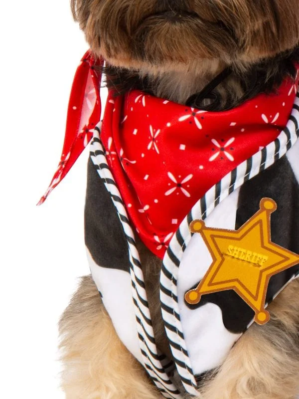 - Shirt in cow hide print featuring leg holes for front paws, with sewn on badge